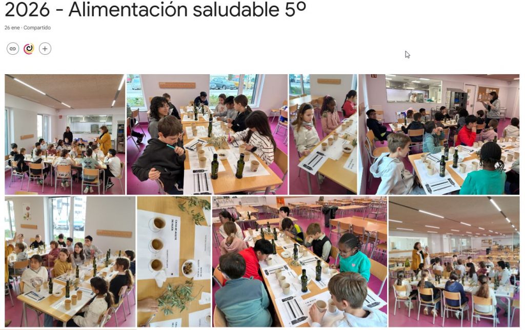El alumnado de 5º de Educación Primaria ha realizado una degustación de diferentes tipos de aceite de oliva virgen extra Urzante en el comedor del colegio. Han probado diferentes variedades, grados de acidez, textura y han conocido el proceso de elaboración del aceite desde el árbol hasta la mesa. La actividad se realiza con el fin de promover en el alumnado desayunos y almuerzos más saludables.