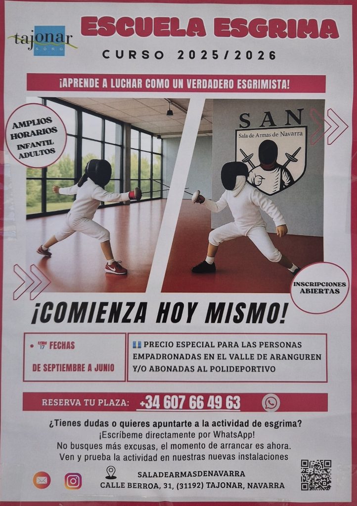 La APYMA Paderborn ha vuelto a organizar para este curso una actividad extraescolar de esgrima. Por otra parte, la escuela de esgrima tiene abierto el plazo de inscripciones. Las clases se realizan en su nueva sede de Tajonar.