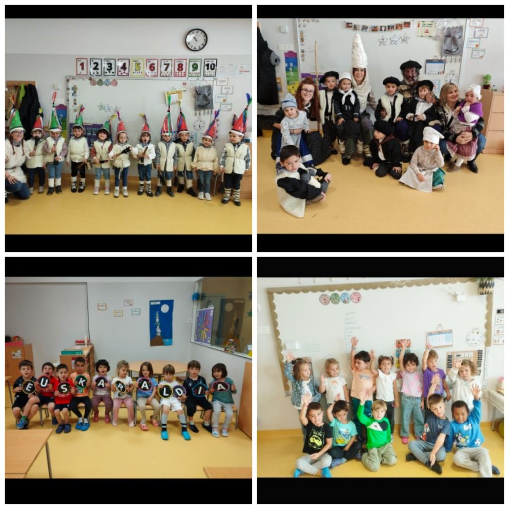 Durante el año vivimos momentos inolvidables. En diciembre recibimos con muchísima ilusión a Olentzero y Mari Domingi, que nos llenaron de magia, canciones y sonrisas. En Carnaval despertamos al barrio con fuerza y alegría disfrazados de zampanzar, una experiencia que nos conectó con nuestras raíces y tradiciones más auténticas.